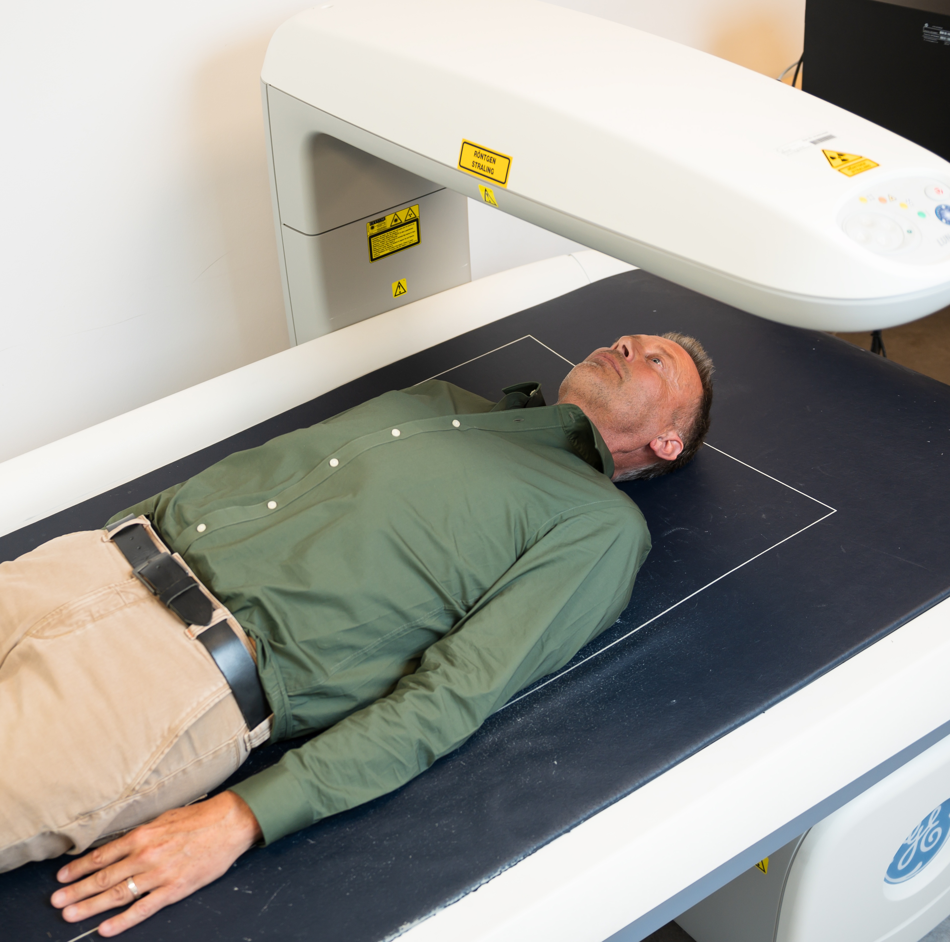 Nee, wij maken geen röngenfoto's. Om een gedetailleerd beeld van uw wervelkolom te krijgen, maken wij op indicatie een iDXA Total Bodyscan. Deze scan geeft een duidelijk beeld van eventuele afwijkingen aan de wervelkolom. Voor mensen met gewrichtsklachten aan bijvoorbeeld de schouder, elleboog, pols, heup, knie, enkel en hiel bestaat de mogelijkheid om een echografie te maken.